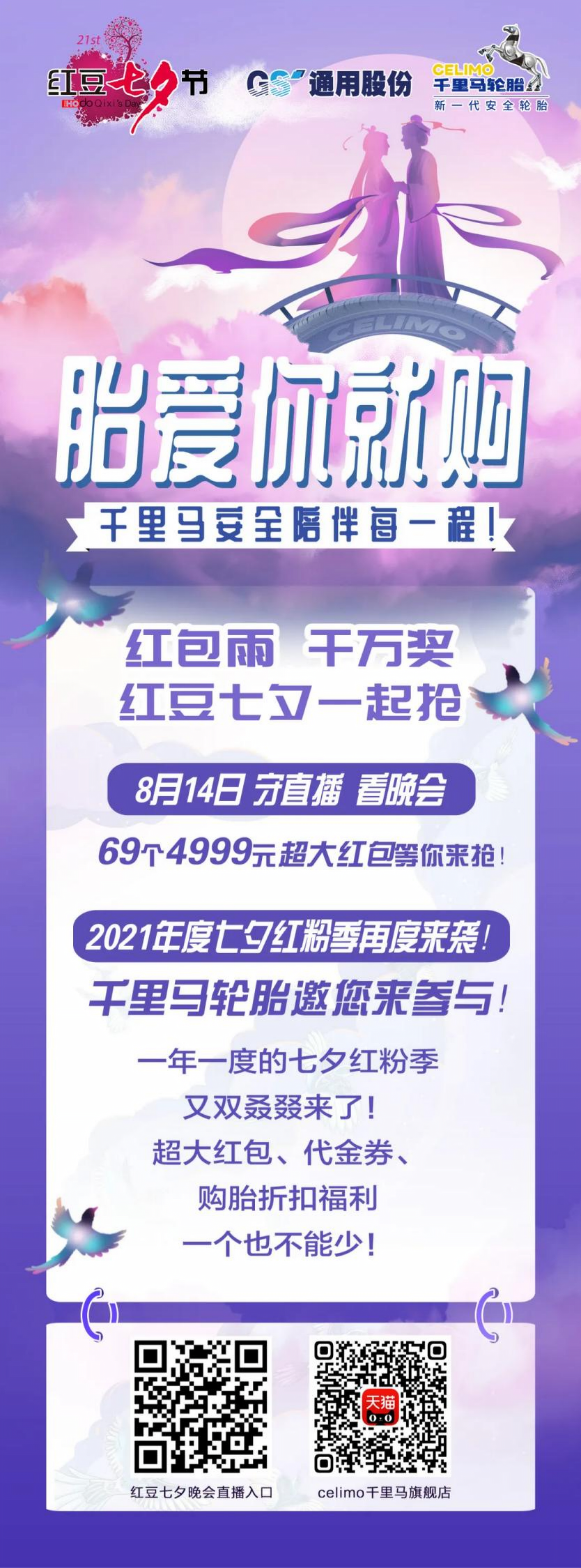 紅包產(chǎn)生路徑:“celimo千里馬”天貓官方旗艦店將抽取一名幸運消費者,另外還將有68個4999元紅包名額將通過紅豆七夕晚會(2021年8月14日20點至22點)在直播平臺現(xiàn)場瓜分。
